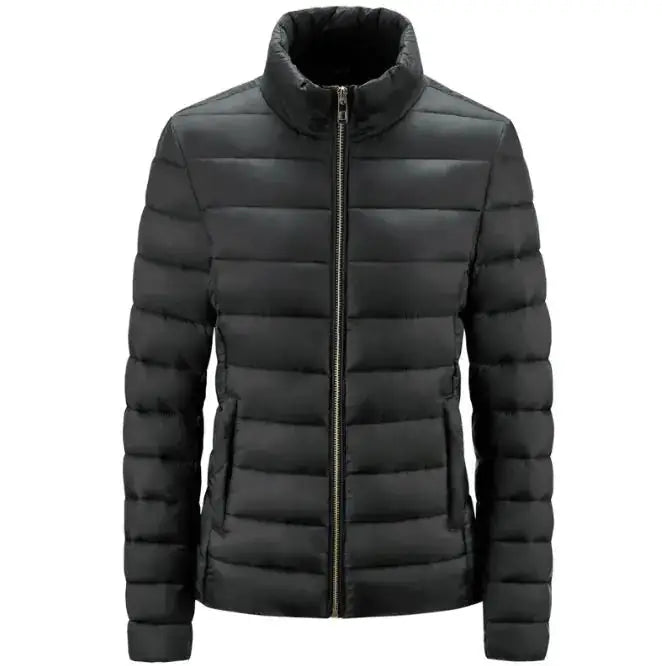 Simple Women's Stand-Up Collar Puffer Jacket – Timeless Warmth and Style